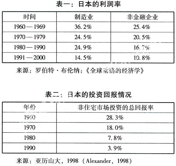直到20世纪80年代末这种利润率的下降似乎都在可以控制的范围之内。在日本式的资本主义经济中,国家主导投资方向,银行不关心企业的利润率,他们只保证向工业集团提供投资资金。这样只要有利可图人们就会去投资。在20世纪80年代,日本的投资占国内生产总值的31%,而同期的美国仅占21%。但是,要维持这种高投资只能靠限制大众消费:这部分是靠压低实际工资,部分则是通过国家只提供最低限度的医疗补助和退休金从而迫使人们储蓄。