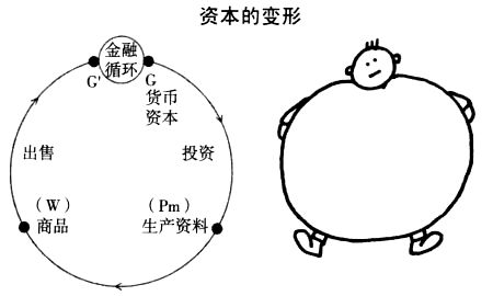 事实上,资本的这一循环在生产和价值的实现之间建立起了一个强制性的社会联系。资本不是某种物体,而是意味着一种无休止的运动。如果资本停止了循环,它将会死去;好比一辆自行车,如果不蹬它,它就会倒下。