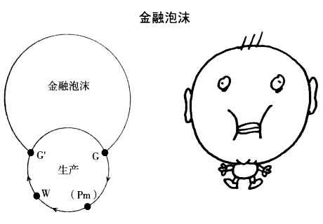 如果这种金融循环超速运转,如果金融流通的G-G’循环的转速超过了总生产的G-Pm-W-G’循环;更有甚者,如果那些对这一“奇迹”赞叹不已的股东和银行家们抢先着手于尚未到来的循环,并加快它的运转,那么整个体系就会患上脑积水,投机经济或虚拟经济就会变得比实体经济更为庞大。这就是著名的泡沫理论,就像寓言里的青蛙一样,最后会自己爆炸。