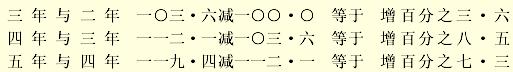 上表的计算,以民国二年为标准,等于一○○,十五年的指数乃九个月的平均数。从上表看来,十五年物价,高过民国二年百分之九十。十元的物价,现需十九元了。民国二年维持家庭的消费,用一百元,现需一百九十元了。物价几乎增高一倍。