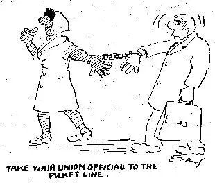 工会官员有好有坏,有些工作努力,有些则不,有的愿意参与罢工并一直尝试代替你负责罢工事宜,另一些人你接连几星期看不到他。但有一个重要之点是很清楚的:他们所做工作的真正实质,就是充任中间调停者。他们的地位,甚至他们的存在,恰恰有赖于他们这方面的能力——代表你们从管理层那里赢得一些让步,同时为管理层从你们那里赢得一些让步。