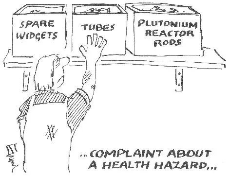 上图中的文字:第一行分别为“备用工具 管子 钚反应堆燃料棒”;