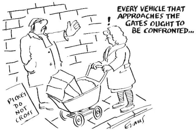 不过,法律是不精确的,而且很便于警察自己来解释。保守党人也威胁说要加强反工会法律。但是严格按照法律来讲,一千个球迷在车道上散步是违法的——尽管这样的事每周六在每个足球场周围都发生,警察并不干涉。罢工纠察线也类似,技术上是否违法,跟实际发生的事情之间有很大差别。