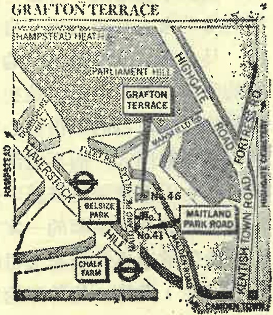 卡尔有时候把自己的地址写作哈弗斯托克山,这是连接楚尔克农场和汉普斯泰特村庄的一条要道。即使在今天,也像那时候一样,格拉弗顿坊仍然是在那条道路的“反”面,也就是说,它在很大程度上是工人阶级住区肯提希镇的一个部分,而不是中产阶级住区汉普斯泰特的一部分。在1866年前后,一些工人阶级的居民已经搬迁到肯提希镇来。当一位新闻记者问一个当地居民修建铁路干线对居民迁移起了什么影响时,他得到一个很全面的回答: