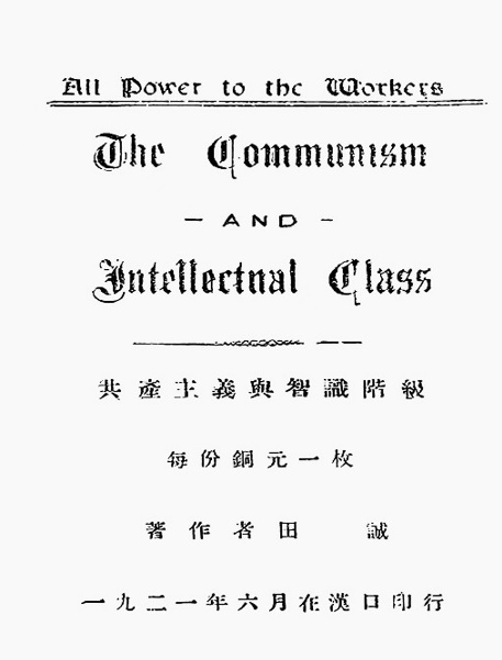 〔说明〕该文为早期上海共产主义小组的政治宣传品,于1921年6月在汉口出版,作者署名为田诚,真实姓名不详。学者任武雄原曾考证“田诚”系陈独秀化名,后又推翻。目前均无直接证据可证明。