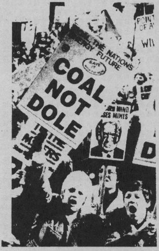 今天,煤矿工人再次为自身生存而发动罢工,初时是非常孤立的。以史加基尔为首的全国矿工工会领导着14万矿工与政府的恐怖及暴力单独作战。而拥有1千万会员的『全国工会联会』(TUC),只是作出软弱无力的『声援』;一向声称维持工人利益的『工党』,更出现内部左、右翼分歧,致使不能全面策动支持罢工的行动。