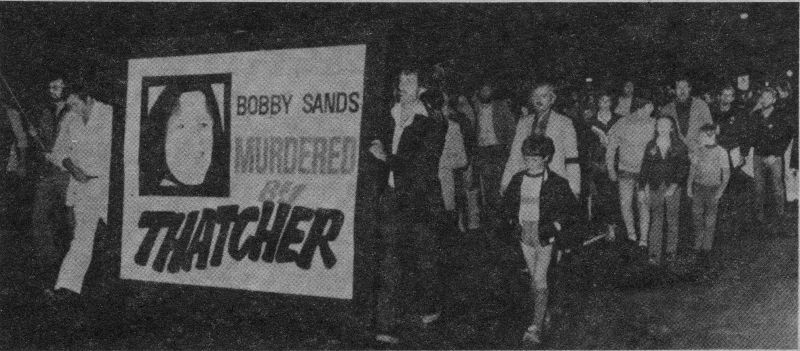不过,爱尔兰本国人民是清楚知道英政府的暴行的。他们几百年来已习惯了悲剧性的生活和经常的蹂躏打击,然而,他们渴求和平、自由和平等的愿望是一直燃烧着的。这次政治犯在无法忍受非人待遇的情况下进行绝食抗议,得到了爱尔兰本土人民的热烈支持,引发了自七二年一月达里十三人被杀以来最大规模的群众动员。在十一月廿二日,超过二万人在都柏林游行,到十二月六日,游行人数增至四万,到七日更增至约五万人。各地大小城镇也都爆发了群众游行集会,有些地方更发生警察与年青游行者的冲突。在十二月十日,全国发生大罢工,在西贝尔法斯特,所有大企业停顿,在一些接近英国边界的城镇,罢工令全城完全瘫痪。在爱尔兰最南部的科克港,『爱尔兰钢铁厂』的全部工人都罢工。差不多所有工会组织都表示支持绝食者的要求。